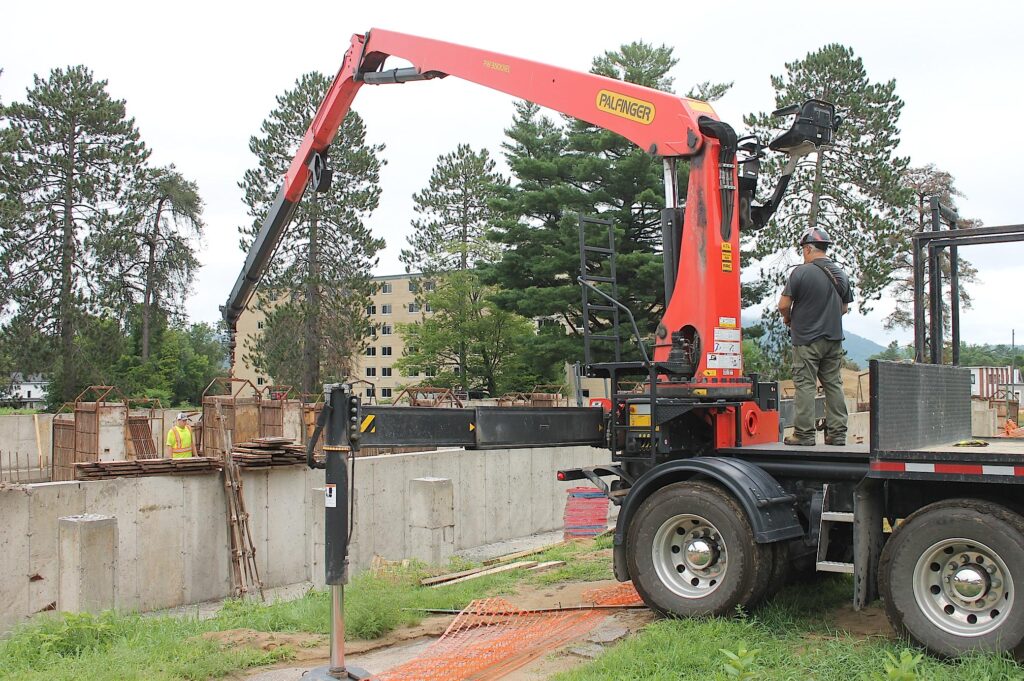 Workers from Campbell’s Bay Cement were offloading forms recently as work continues on the foundations of a $6 million apartment development in Deep River.